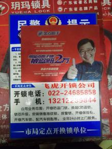 飛虎開(kāi)鎖有限公司天津分公司全年24小時(shí)上門(mén)服務(wù),主要從事開(kāi)鎖、修鎖、換鎖芯、安裝鎖具、貓眼、對(duì)講門(mén)、改門(mén)把手,承包鎖具工程的改造,開(kāi)修各種保險(xiǎn) 柜、文件柜、異型鎖、磁力鎖、電子密碼箱鎖、防盜門(mén)、各種高、中、低檔汽車(chē)鎖,配精密高端鑰匙、電子芯片鑰匙及國(guó)外異形鑰匙等。并經(jīng)銷(xiāo)各種高中檔防盜門(mén)、 木門(mén)、室內(nèi)門(mén)、指紋門(mén)、各式各樣鎖芯、各種各樣的鎖具及開(kāi)鎖工具。